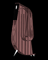 Each form has a purely aesthetical expression and is (individually) associated in our mind. I suppose it could be seen as a wing, a piano or a penguin beside an abstract sculpture. It integrates geometric and organic forms and should be realized in wood or in a combination of fiberglass and wood (the sides) with felt behind the speaker at the upper front (the high adjustable feet/spikes made of aluminium or wood). |